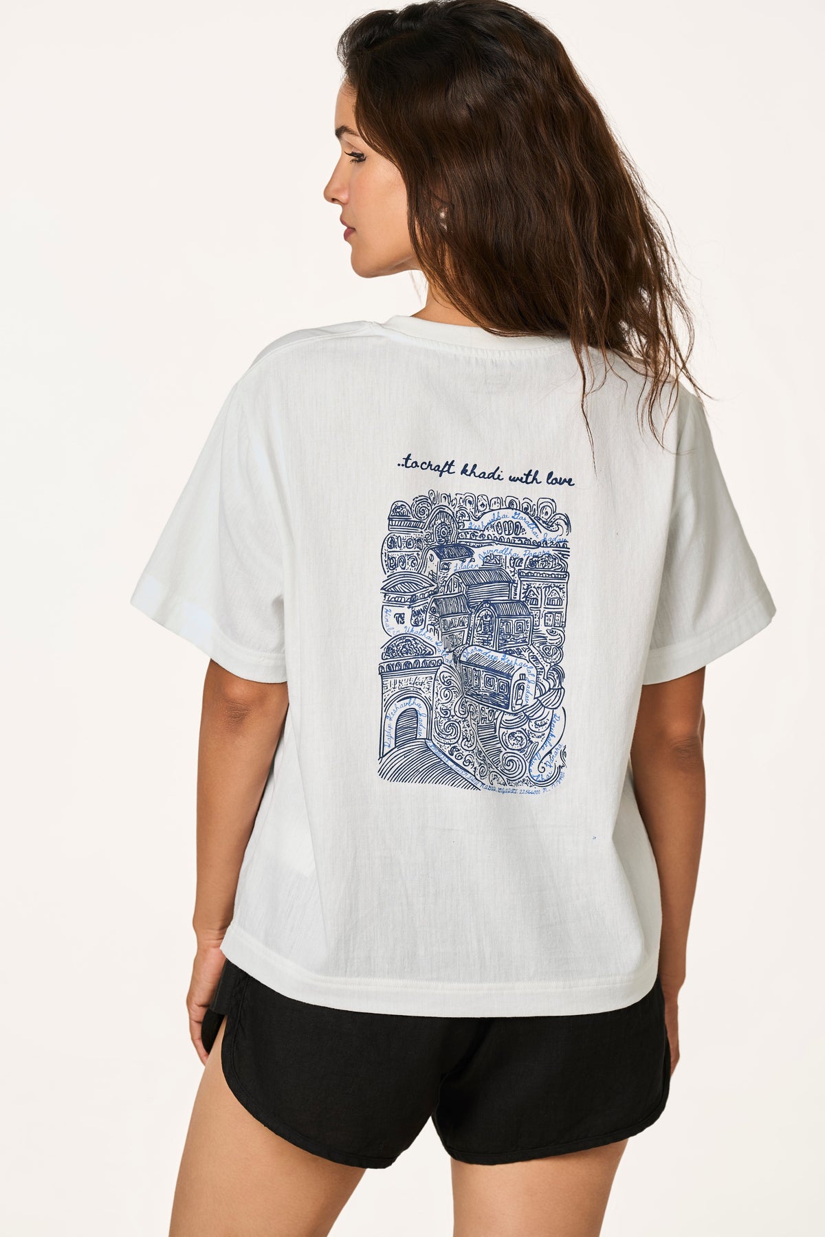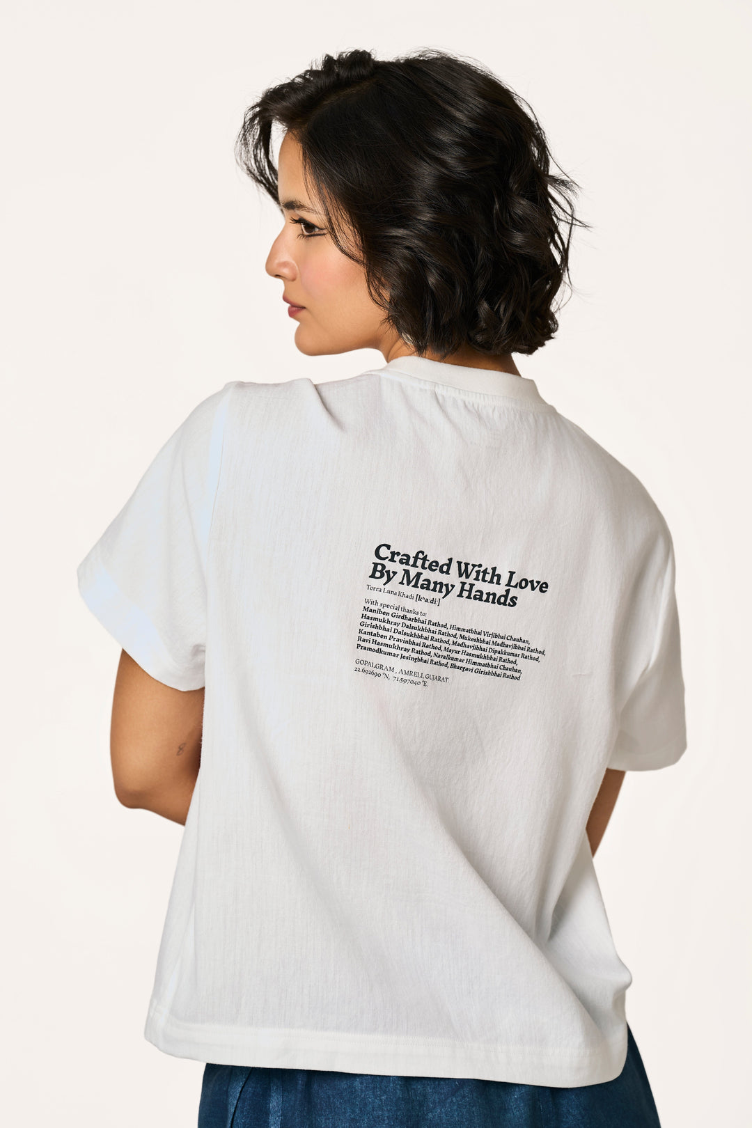 Our Khadi is traditionally hand-spun and handwoven by skilled artisans in Amreli, Gujarat. We proudly use non-electric spinning wheels and looms to produce this fabric with a zero carbon footprint.